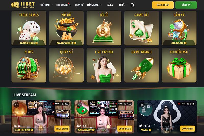 Điểm nhấn đặc biệt đầu tiên khiến cho các sảnh game casino 11BET luôn nằm trong danh sách ưu tiên của nhiều anh em. Đó chính là nhờ vào việc sở hữu nhiều thể loại game bài hấp dẫn đang có trên thị trường.